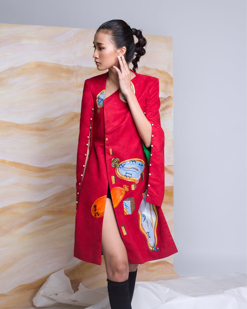 Surrealism-painted Slit Sleeve Coat
