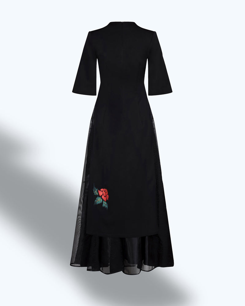 Roses-painted Bell Sleeve Contemporary Black Aodai