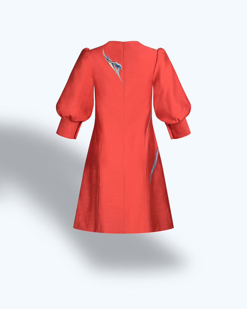 Cactus Flower-painted Puff Sleeve Mini Dress
