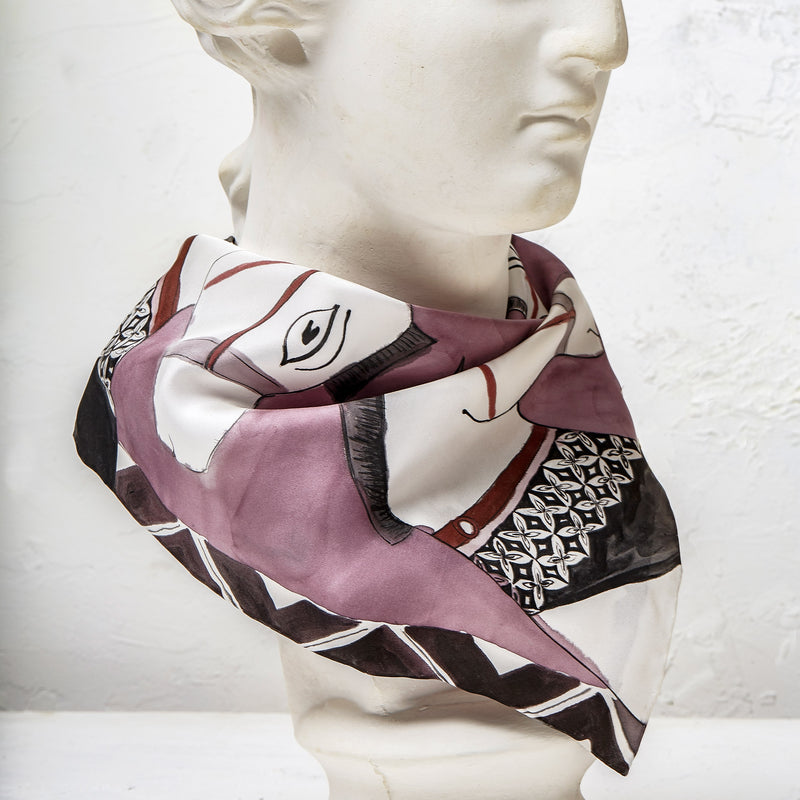 Vietnamese Water Puppet Hand-painted 55 Square Silk Scarf