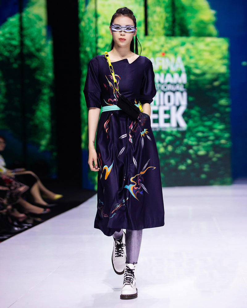 Story of Sunset-painted Dark Blue Skater Midi Dress