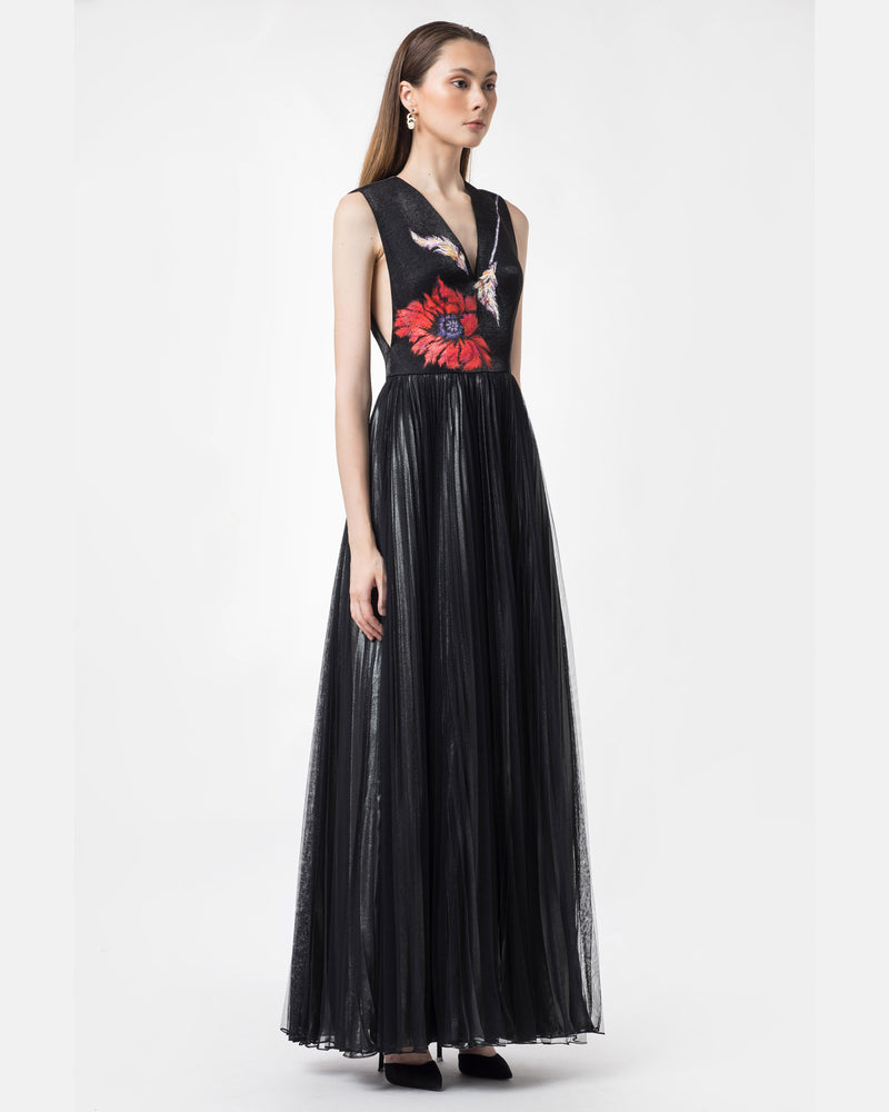 Amaryllis-painted Circular Sleeve Contemporary Aodai