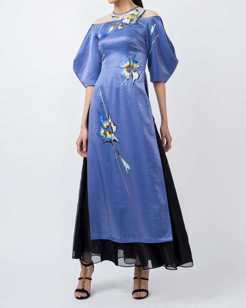 Orchid Tree Flower-painted Voluminous Sleeve Contemporary Ao Dai