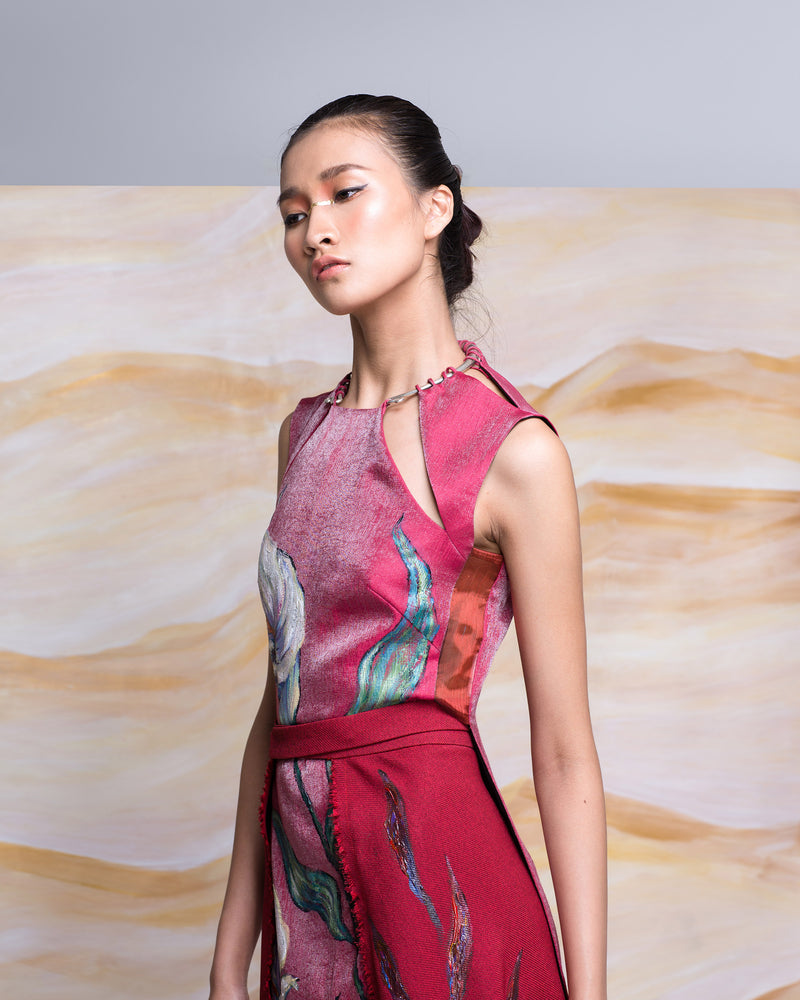Lustre Reverie - Cape Sleeve Timeless Artistic Evening Dress