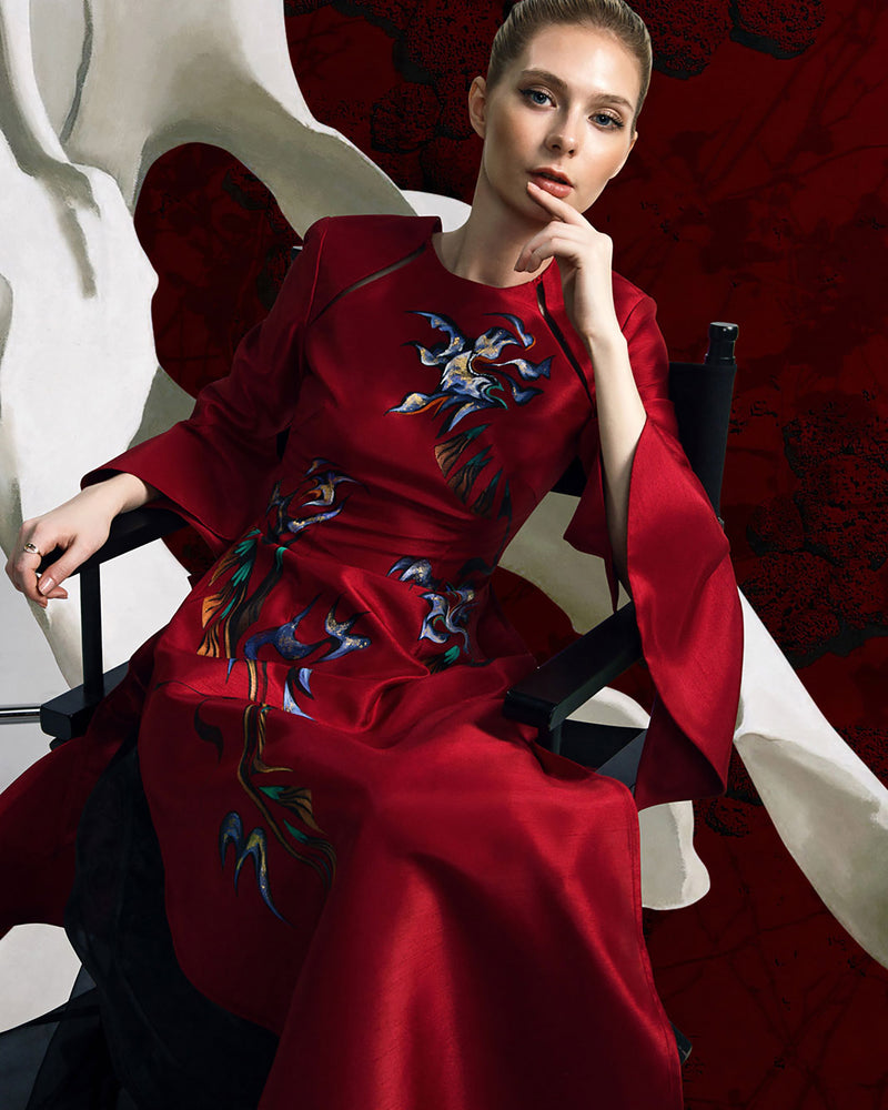 Red Dragon - Circular Sleeves Contemporary Ao Dai