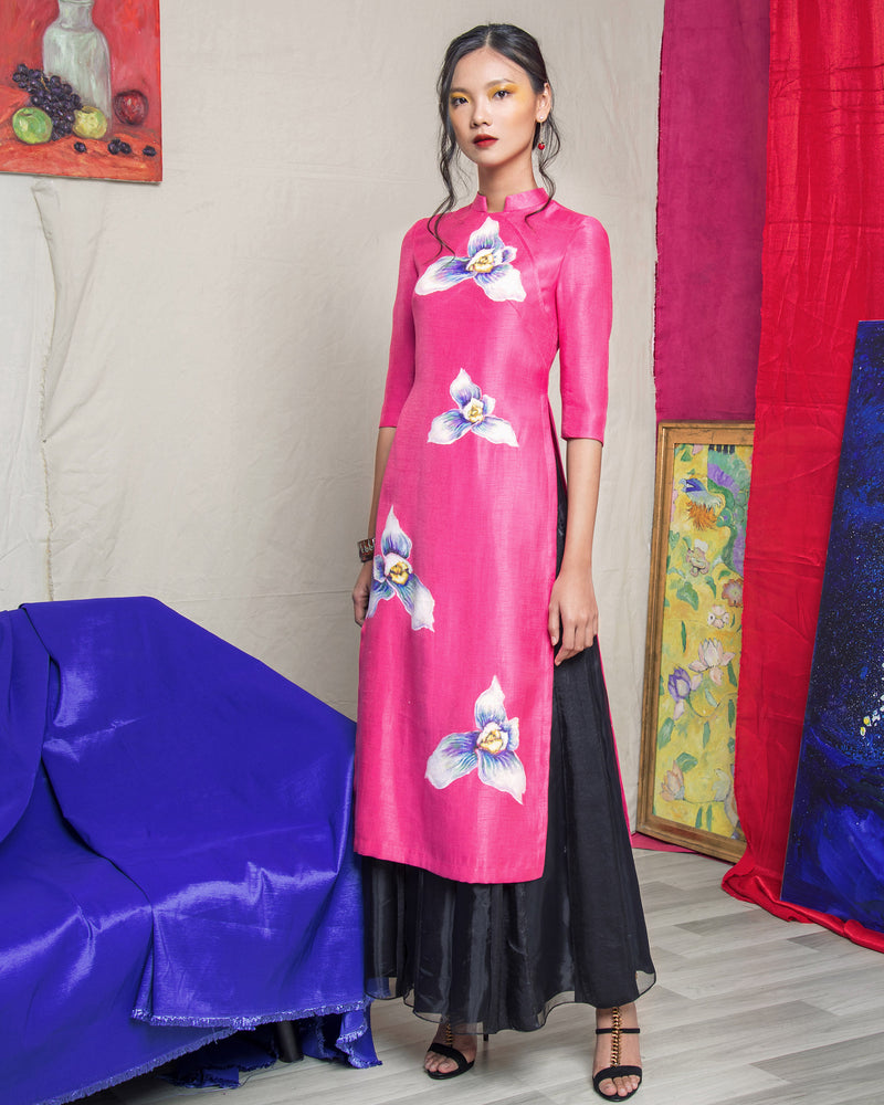 Floral-painted Raglan Sleeve White Contemporary Ao Dai