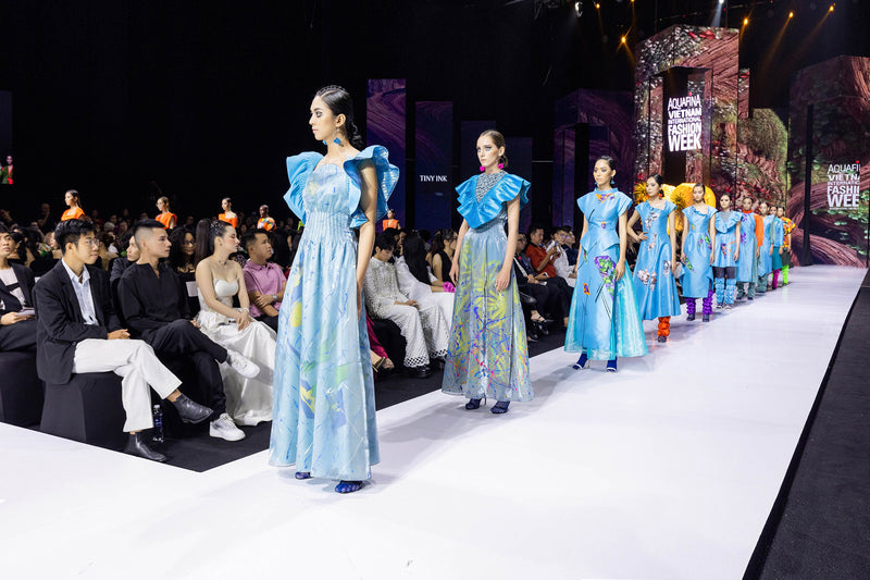Màu sắc chưa bao giờ giấu mình - đó là một ngôn ngữ thời trang rất riêng, độc bản của thương hiệu. Tiny Ink luôn sử dụng những màu sắc nổi bật, mạnh mẽ chứ không giữ sự an toàn đằng sau những gam màu đơn sắc. Những tone màu tưởng chừng như khác biệt hoàn toàn và không thể dùng chung lại được phối mix đầy táo bạo, tạo thành một tổng thể hài hoà trên mỗi thiết kế.
