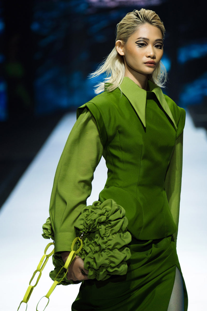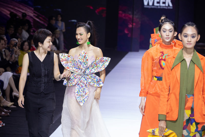 Hoà mình cùng hành trình chuyển hoá của những viên đá quý trong lòng đất, BST được phân đoạn theo màu sắc, từ sắc cam mang năng lượng của mặt đất, đến những mảng màu rực rỡ trong ngày hội chuyển hoá, và kết tinh thành sắc xanh của những viên ngọc quý, trước khi quay về với sự trong suốt và ẩn mình trong trái tim mộc mạc. Và rồi như 1 hình tượng ẩn dụ, từ sự trong suốt ấy, một đoá hoa ngẫu hứng của sự sống bung nở, đoá hoa của những năng lượng hạnh phúc đang chuyển động tự nhiên.