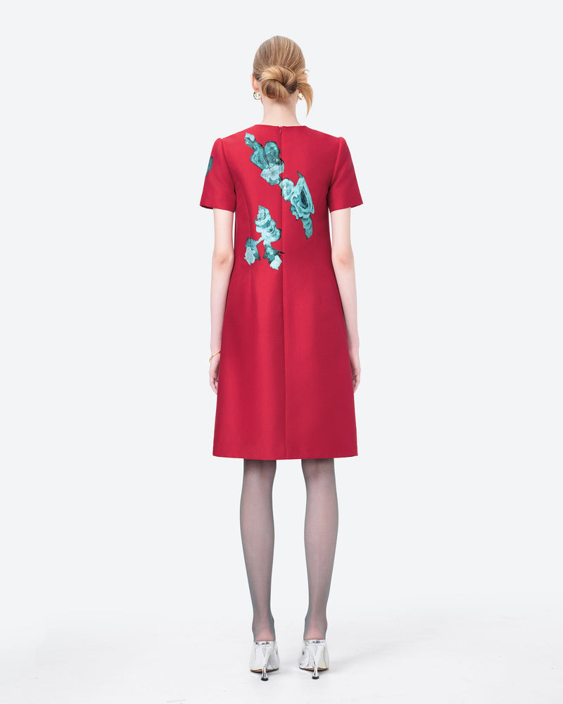 Ember Bloom - Đầm Mini Đỏ Tay Ngắn