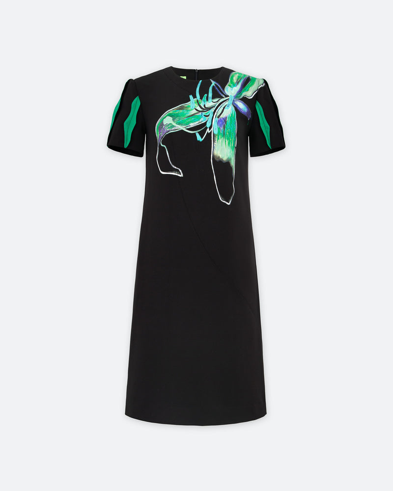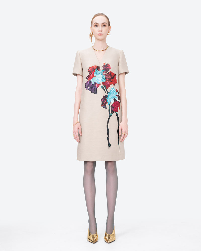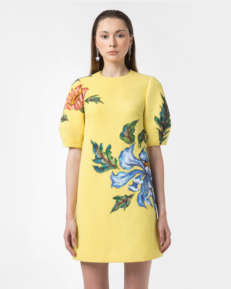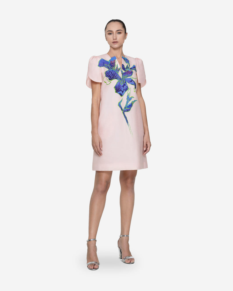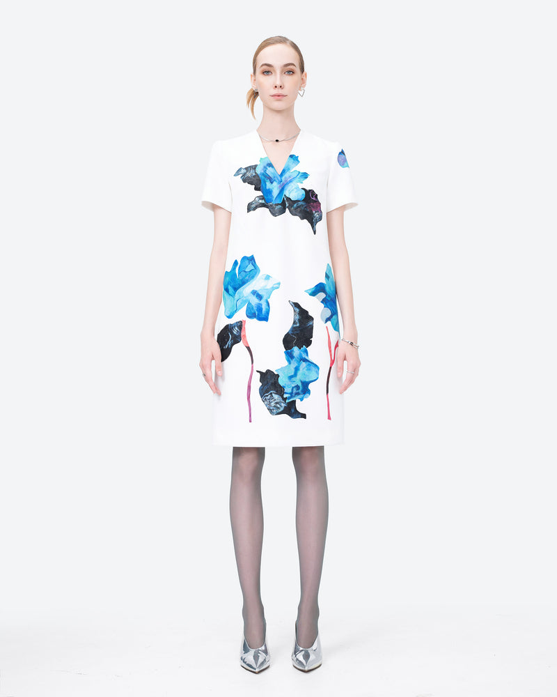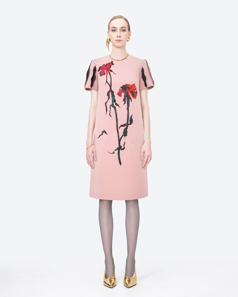 Đầm suông tay phồng họa tiết hoa Poppy vẽ tay