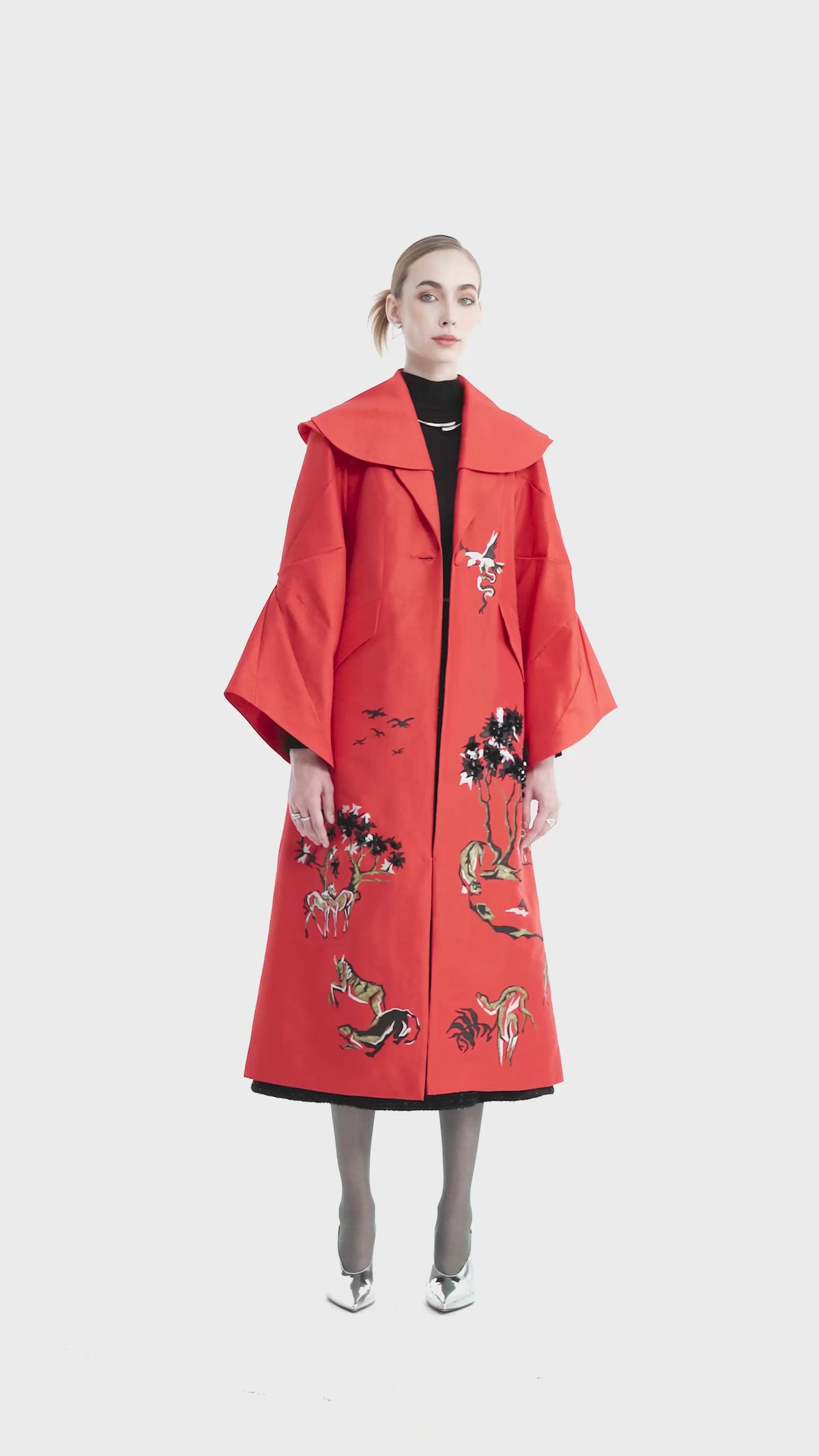 Chi tiết: Form dáng oversized, cổ áo điêu khắc và tay áo rộng. Lớp lót hoàn thiện, tạo cảm giác thoải mái và sang trọng. Chiều dài: 125 cm, dựa trên size 4 (US).
