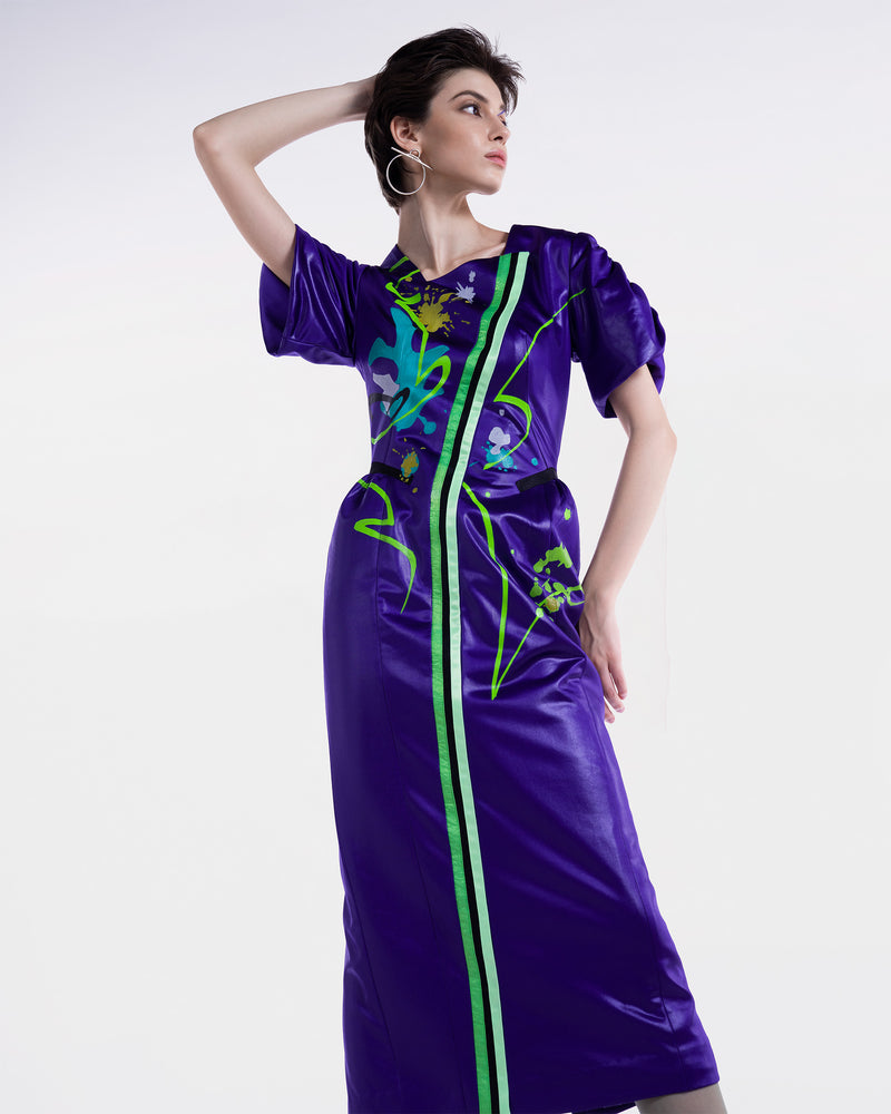 Abstract Flower - Đầm Midi Tím Indigo Bất Đối Xứng