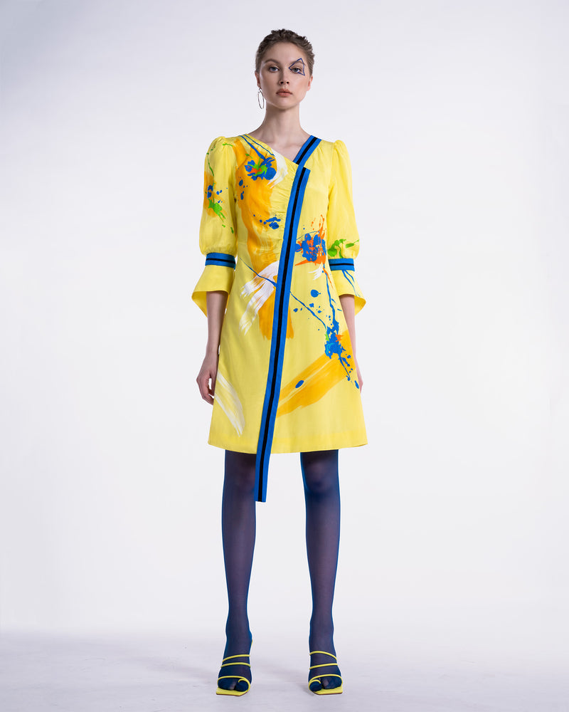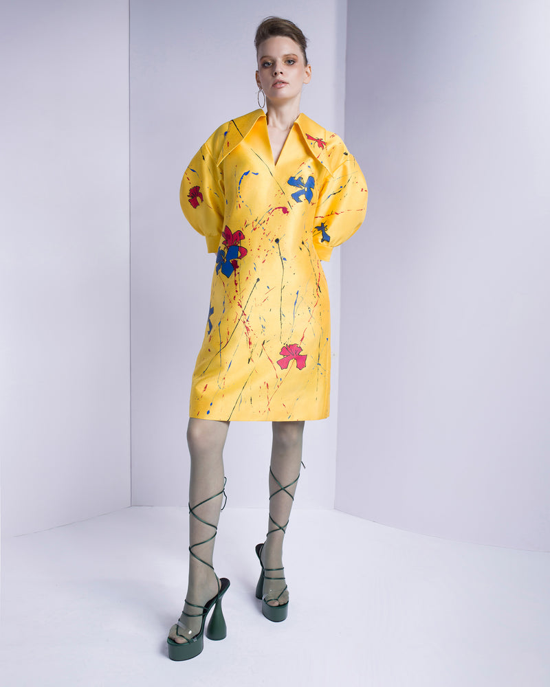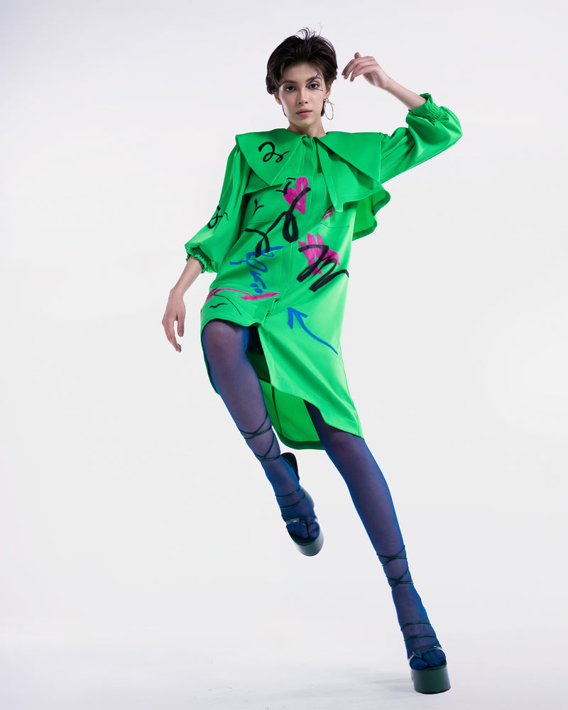 Sự Ấn Tượng - Đầm Sơ Mi Xanh Neon Cổ Áo Cường Điệu