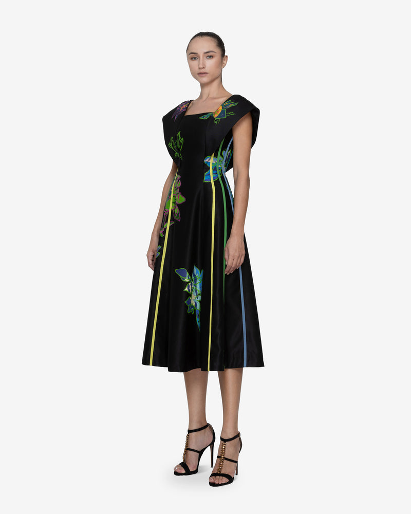 Future Bloom - Đầm Midi Đen Tay Chờm