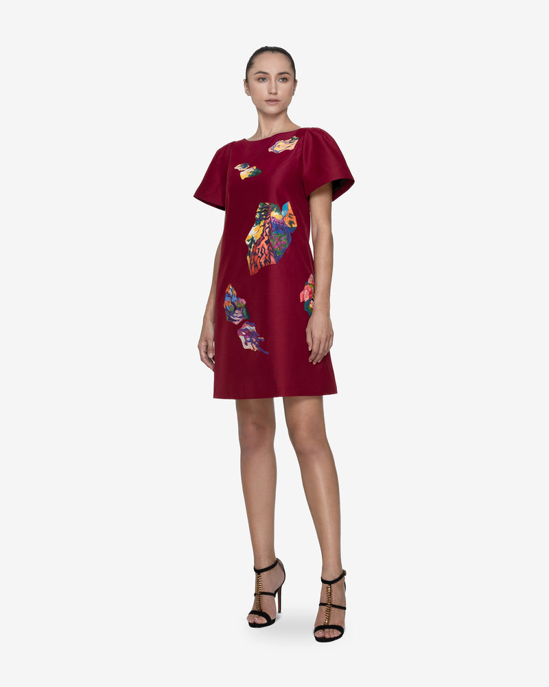 Đầm Taffeta Xám Hoạ Tiết Poppy