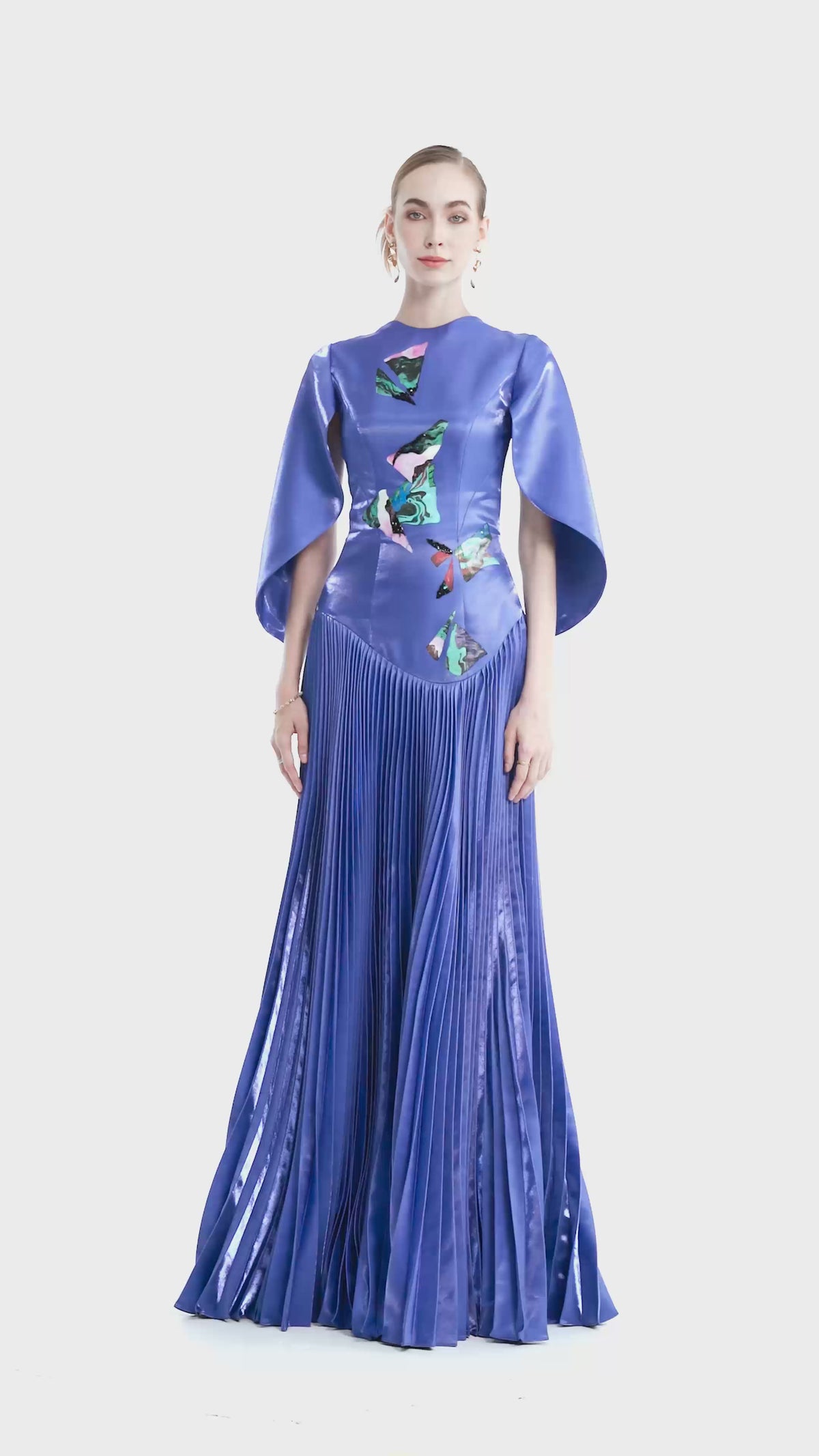 Fancy Flow - Đầm Tiệc Xanh Sapphia Tay Cape